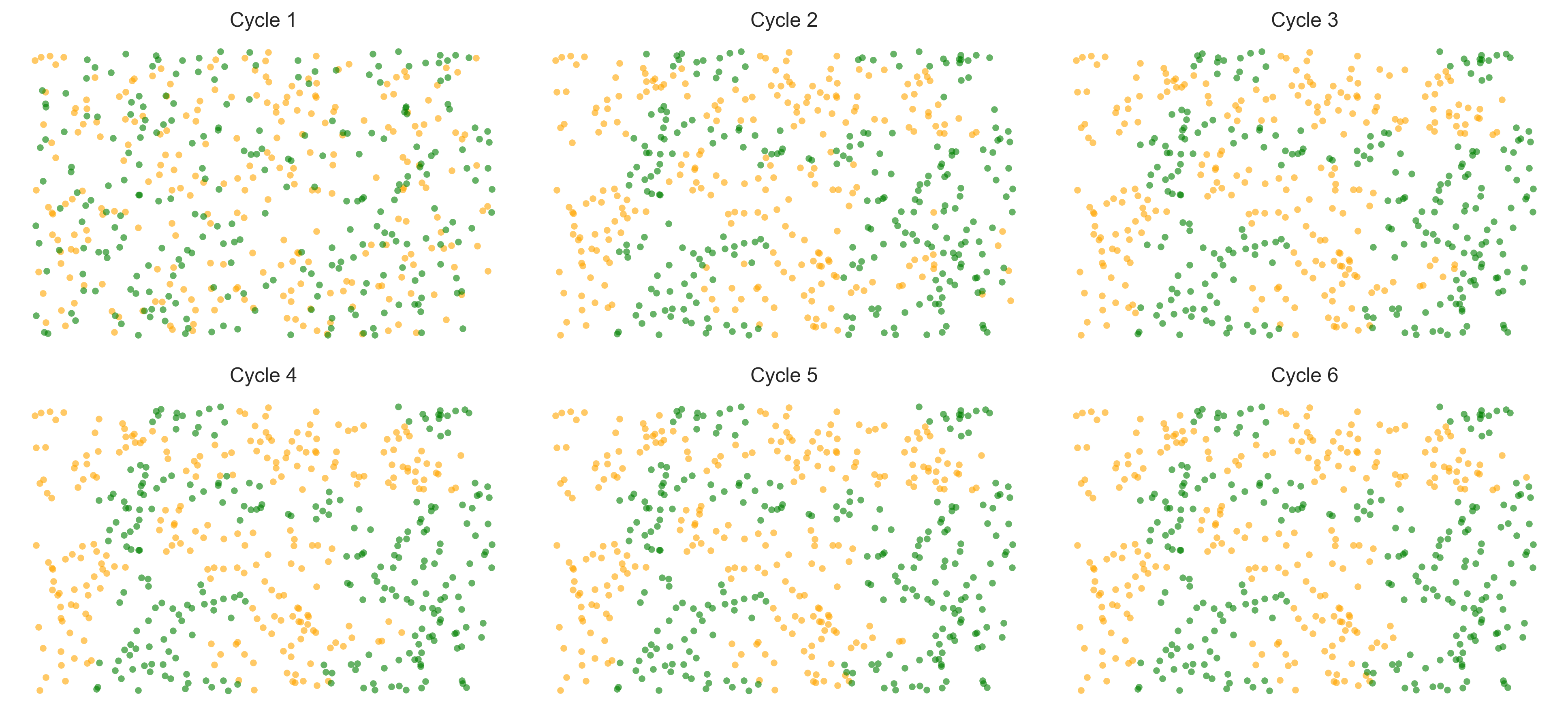 The exercises for this lecture will explore how the model’s outcome depends on its parameters. It will investigate what it takes to achieve a well-mixed society.